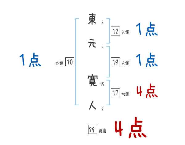 東元寛人さんの画数の鑑定結果