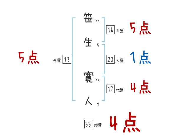 笹生寛人さんの画数の鑑定結果