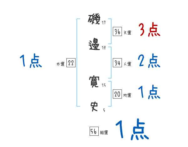 磯邊寛史さんの画数の鑑定結果