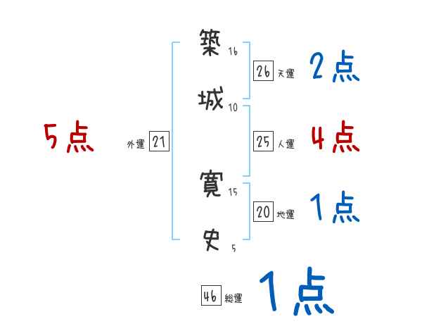 天運![]() | 築城寛史さんの天運は26画の2つ星!波瀾万丈かも。信頼できる人を大事にしましょう。 家系が持つ宿命的な運勢を表します。祖先から受け継いだ苗字ですので自分の力が及びません。家柄を象徴します。 |
