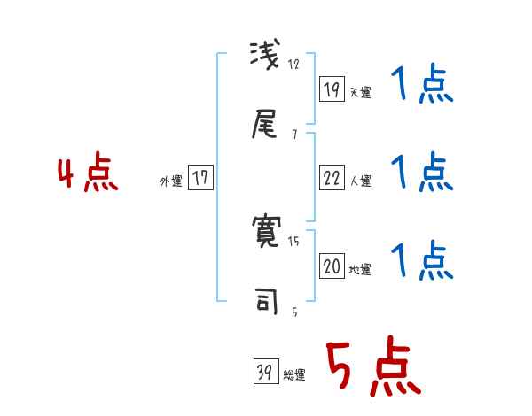 浅尾寛司さんの画数の鑑定結果