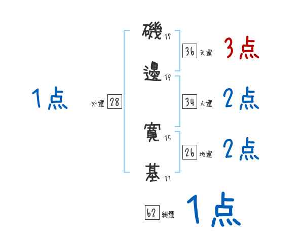磯邊寛基さんの画数の鑑定結果