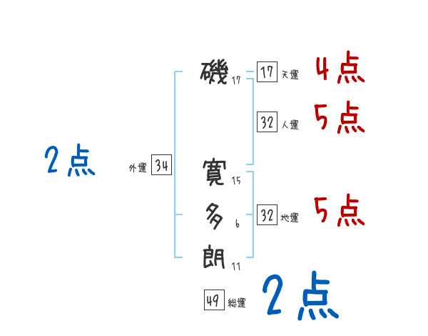 磯寛多朗さんの画数の鑑定結果
