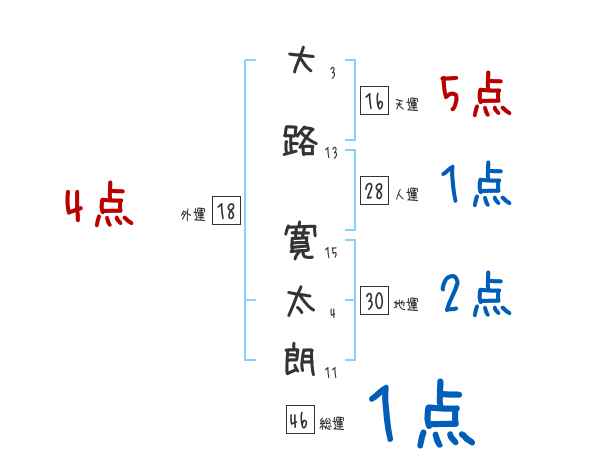 総運![]() | 大路寛太朗さんの総運は46画の1つ星!迷走することが多く苦労するかも。目先のことにとらわれないように。 あなたの人生を表す1番重要な運勢です。生涯を通じて影響する総合運となり、主に50歳以降の晩年期に影響を及ぼします。 |