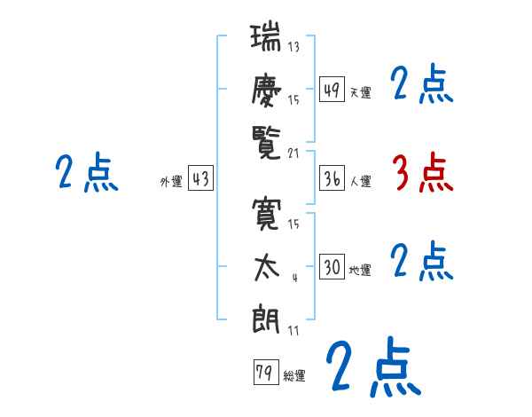 瑞慶覧寛太朗さんの画数の鑑定結果
