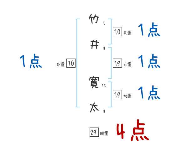 竹井寛太さんの画数の鑑定結果