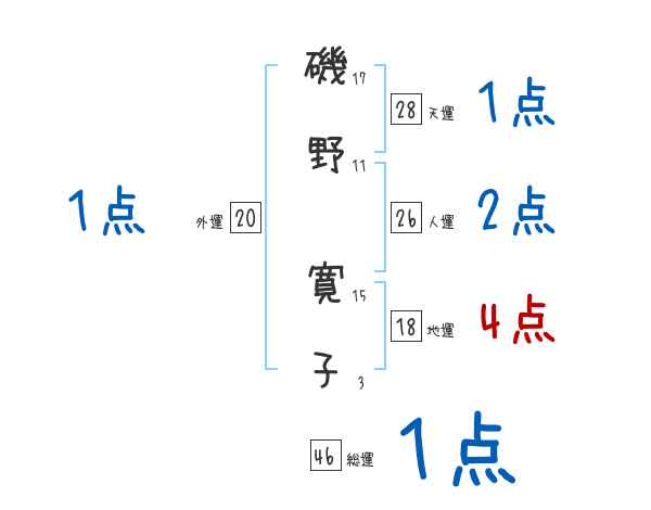 磯野寛子さんの画数の鑑定結果