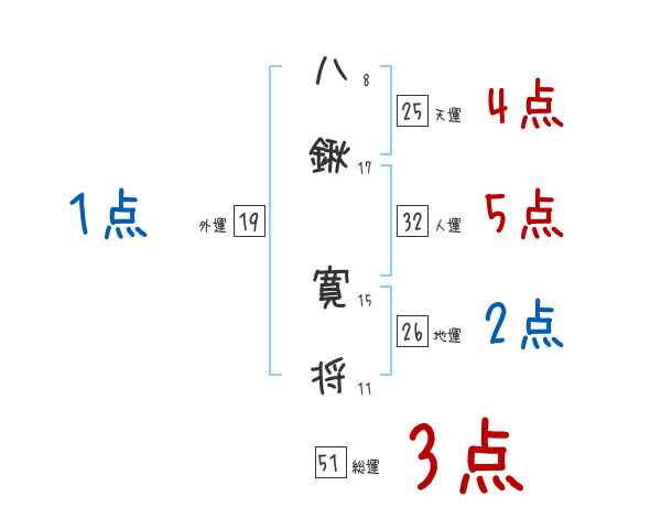 八鍬寛将さんの画数の鑑定結果