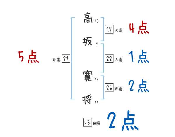 高坂寛将さんの画数の鑑定結果