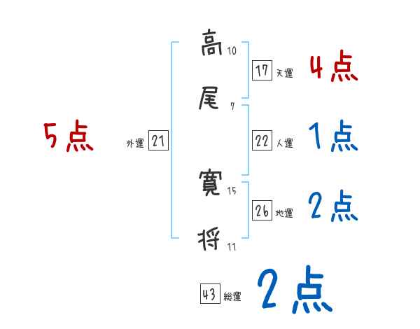 高尾寛将さんの画数の鑑定結果