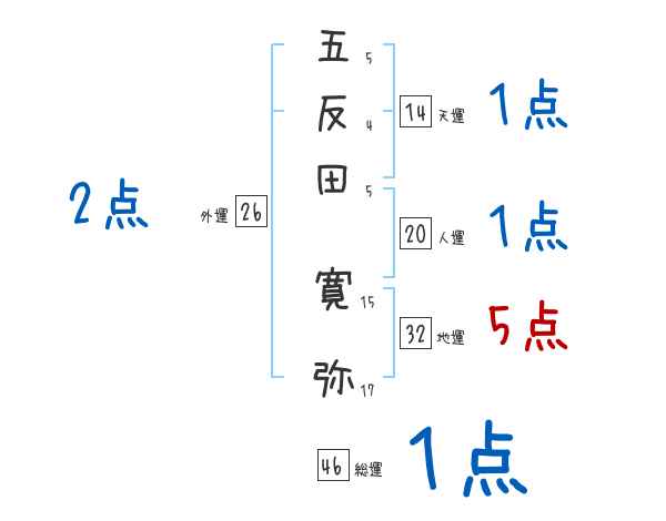 地運![]() | 五反田寛弥さんの地運は32画の5つ星!柔軟性があり成功する。チャンスが多く金運が良い。 個性を表す基礎的な運勢です。性格形成や対人関係、行動力など家庭環境に影響されます。主に誕生してから20歳くらいまでの若年期の運勢を表します。 |