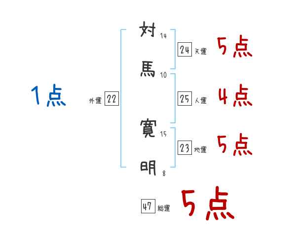 対馬寛明さんの画数の鑑定結果