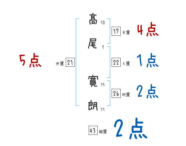髙尾寛朗さんの画数の鑑定結果
