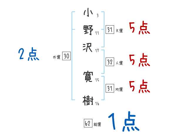 小野沢寛樹さんの画数の鑑定結果