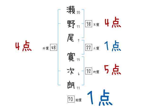 瀬野尾寛次朗さんの外運は48画の4つ星