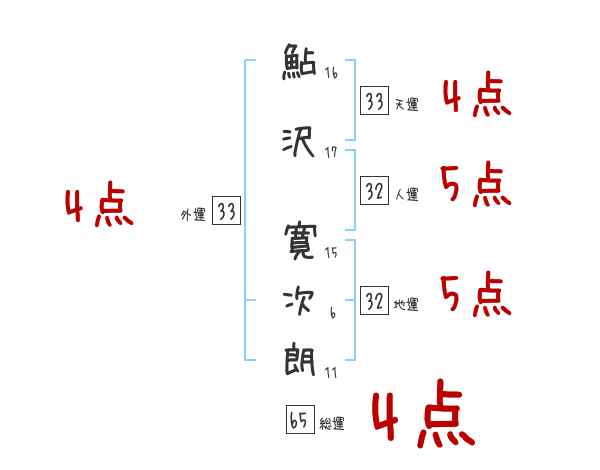 鮎沢寛次朗さんの画数の鑑定結果