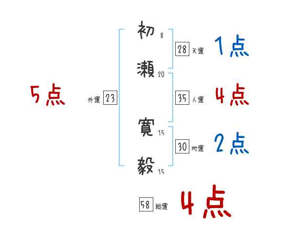 初瀬寛毅さんの画数の鑑定結果