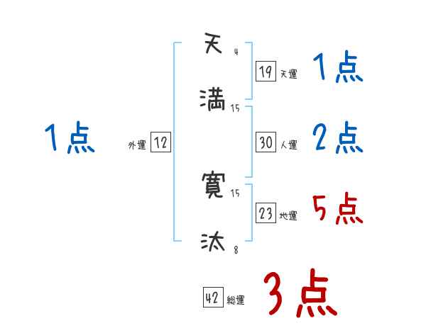 天満寛汰さんの画数の鑑定結果