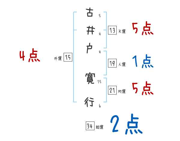 古井戸寛行さんの画数の鑑定結果