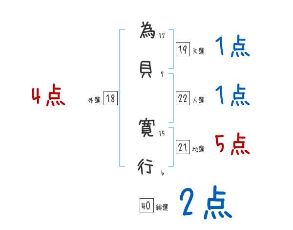 為貝寛行さんの画数の鑑定結果