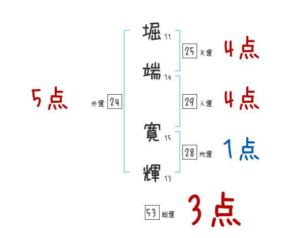 堀端寛輝さんの画数の鑑定結果