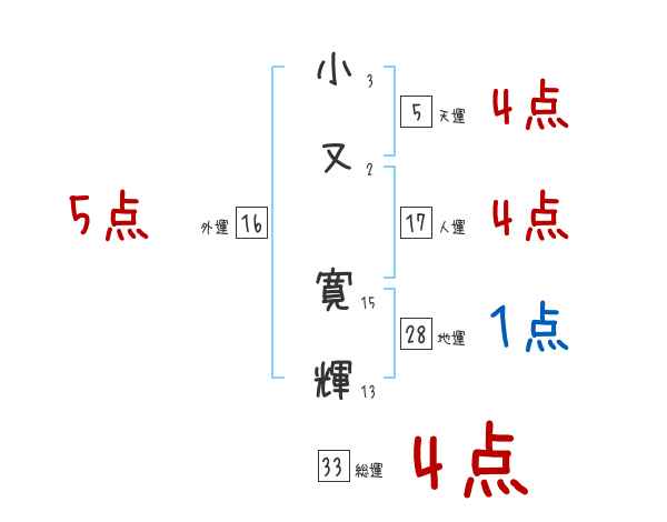 小又寛輝さんの画数の鑑定結果