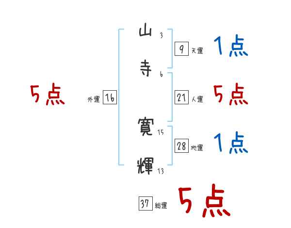 山寺寛輝さんの画数の鑑定結果
