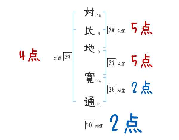 対比地寛通さんの画数の鑑定結果