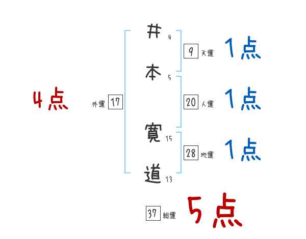 天運![]() | 井本寛道さんの天運は9画の1つ星!消極的で才能を発揮することが苦手なことも。周りの意見に耳を傾けましょう。 家系が持つ宿命的な運勢を表します。祖先から受け継いだ苗字ですので自分の力が及びません。家柄を象徴します。 |