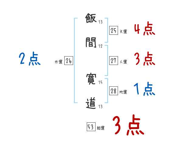 飯間寛道さんの画数の鑑定結果
