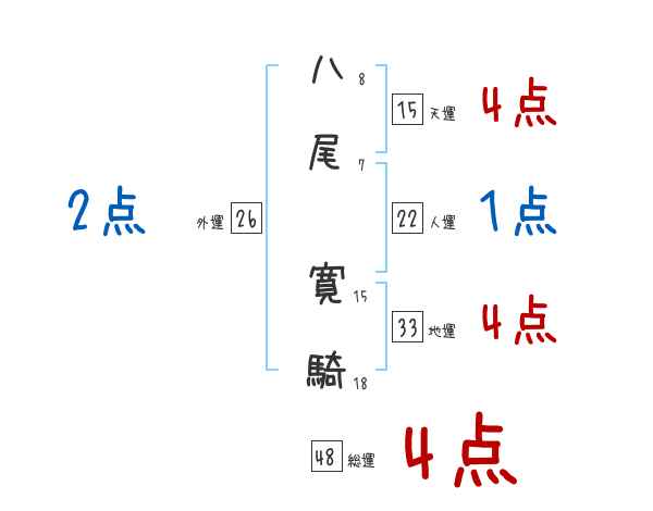 八尾寛騎さんの画数の鑑定結果
