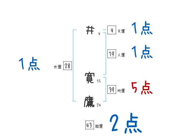井寛鷹さんの画数の鑑定結果