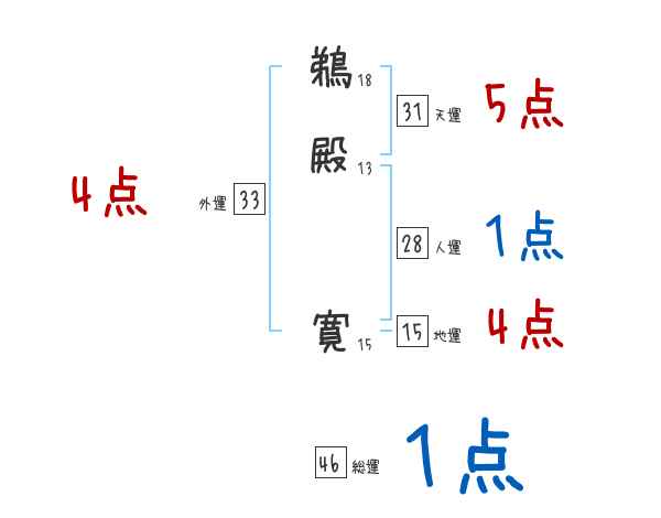 外運![]() | 鵜殿寛さんの外運は33画の4つ星!権力志向でプライドが高い。勇気があり運を切り開き成功する。 生活面を象徴する運勢です。外部から受ける影響力を表し、結婚運、家庭運や職場、環境への順応性を表します。 |