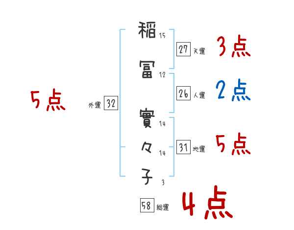 稲冨實々子さんの画数の鑑定結果