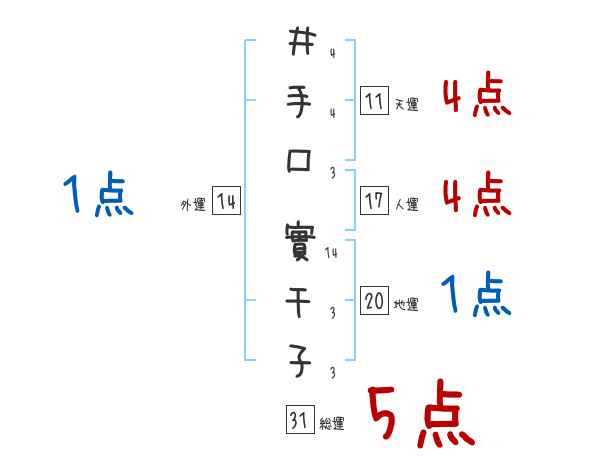 井手口實千子さんの画数の鑑定結果