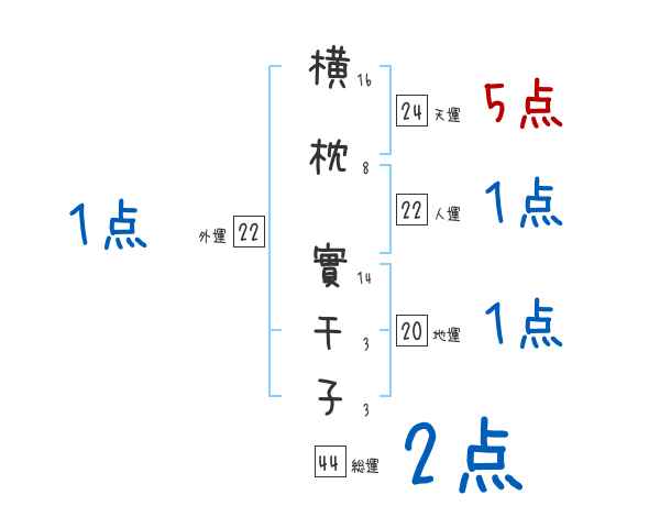総運![]() | 横枕實千子さんの総運は44画の2つ星!誠実で慎重な性格。物事を考えすぎないように注意しましょう。 あなたの人生を表す1番重要な運勢です。生涯を通じて影響する総合運となり、主に50歳以降の晩年期に影響を及ぼします。 |