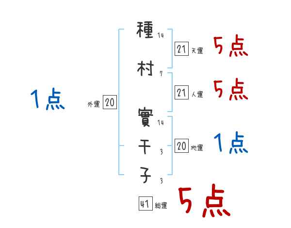 人運![]() | 種村實千子さんの人運は21画の5つ星!統率力がある。独立し成功する。名誉を手に入れる。 性格や才能などを表す2番目に重要な運勢です。人間関係や協調性、社会的な成功に影響します。主に20歳から50歳ぐらいまでの中年期の運勢を表します。 |