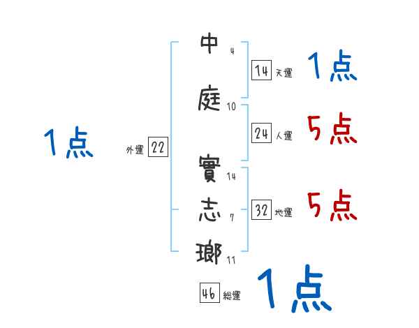 中庭實志瑯さんの画数の鑑定結果