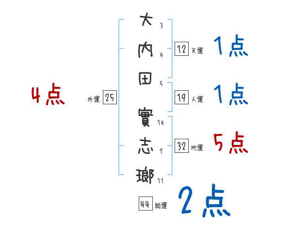 地運![]() | 大内田實志瑯さんの地運は32画の5つ星!柔軟性があり成功する。チャンスが多く金運が良い。 個性を表す基礎的な運勢です。性格形成や対人関係、行動力など家庭環境に影響されます。主に誕生してから20歳くらいまでの若年期の運勢を表します。 |