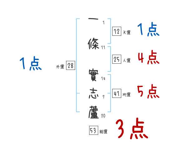 人運![]() | 一條實志蘆さんの人運は25画の4つ星!個性があり才能があふれる。強運の持ち主で発展する。 性格や才能などを表す2番目に重要な運勢です。人間関係や協調性、社会的な成功に影響します。主に20歳から50歳ぐらいまでの中年期の運勢を表します。 |