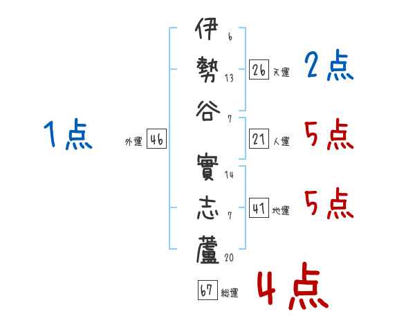 天運![]() | 伊勢谷實志蘆さんの天運は26画の2つ星!波瀾万丈かも。信頼できる人を大事にしましょう。 家系が持つ宿命的な運勢を表します。祖先から受け継いだ苗字ですので自分の力が及びません。家柄を象徴します。 |