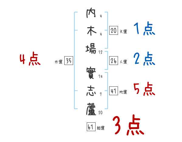 内木場實志蘆さんの画数の鑑定結果
