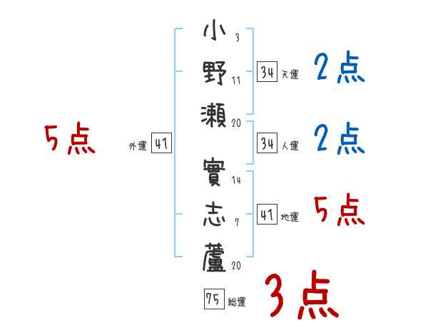 小野瀬實志蘆さんの画数の鑑定結果