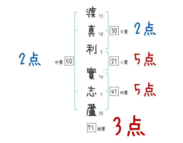 渡真利實志蘆さんの画数の鑑定結果