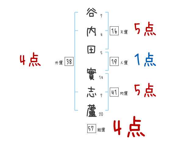 谷内田實志蘆さんの総運は57画の4つ星