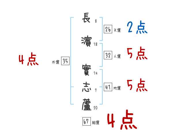 長濵實志蘆さんの画数の鑑定結果