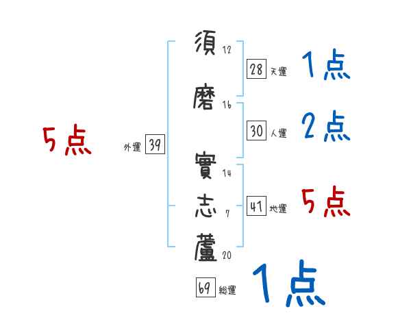 外運![]() | 須磨實志蘆さんの外運は39画の5つ星!社交性に優れ人望が厚い。人の上に立ち成功する。 生活面を象徴する運勢です。外部から受ける影響力を表し、結婚運、家庭運や職場、環境への順応性を表します。 |