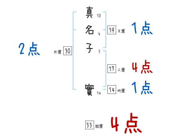 天運![]() | 真名子實さんの天運は19画の1つ星!優れた才能を持ちますが、協調性が足りないことも。周りの人と協力する事を意識しましょう。 家系が持つ宿命的な運勢を表します。祖先から受け継いだ苗字ですので自分の力が及びません。家柄を象徴します。 |