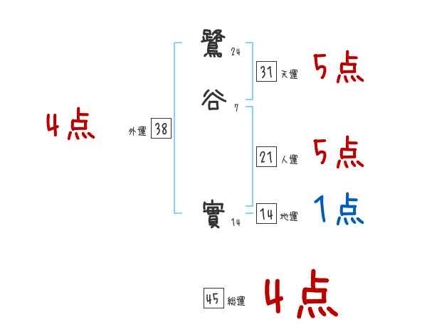 総運![]() | 鷺谷實さんの総運は45画の4つ星!もくもくと物事を進め達成する。地味な努力家。 あなたの人生を表す1番重要な運勢です。生涯を通じて影響する総合運となり、主に50歳以降の晩年期に影響を及ぼします。 |