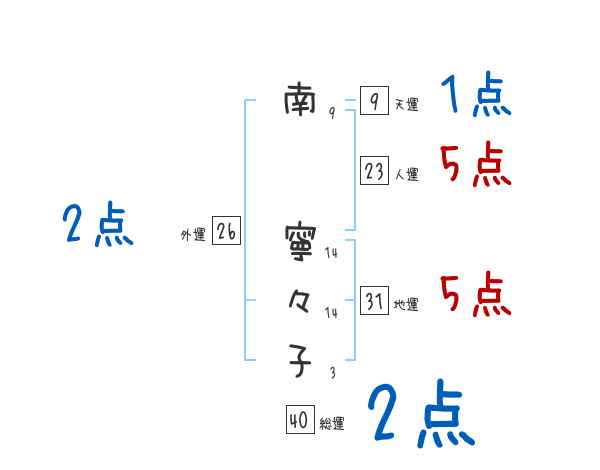 天運![]() | 南寧々子さんの天運は9画の1つ星!消極的で才能を発揮することが苦手なことも。周りの意見に耳を傾けましょう。 家系が持つ宿命的な運勢を表します。祖先から受け継いだ苗字ですので自分の力が及びません。家柄を象徴します。 |